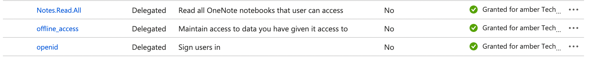 The API Application permissions are requested and Admin consent was granted